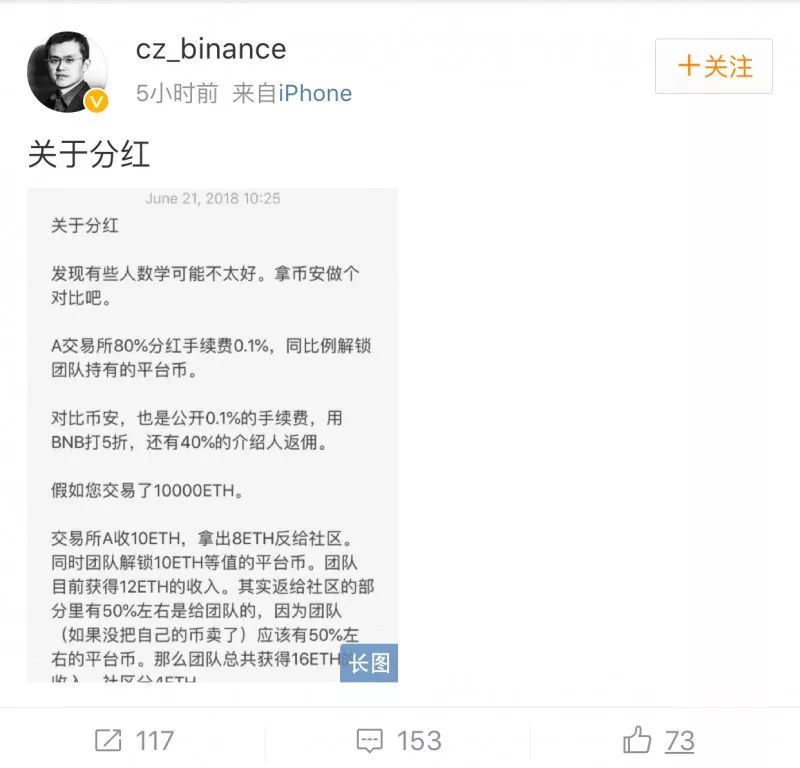 币安创始人赵长鹏接连发布两条微博,回应对FCoin的看法。