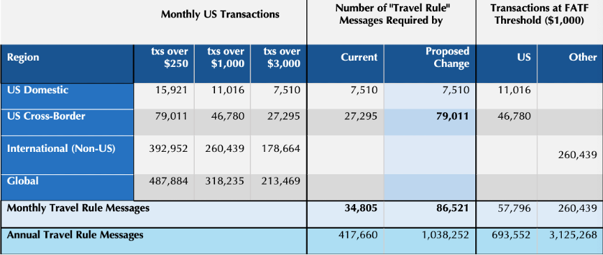 出行规则表明每笔交易涉及多少人,分为四个区域:美国大陆、美国跨境支付、国际和全球。
