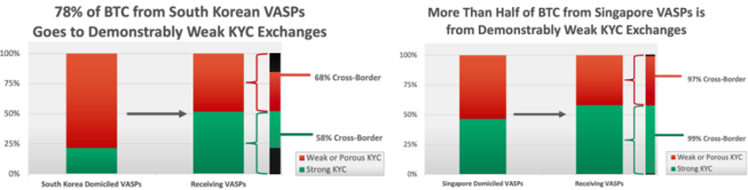 韩国从左边的交易所到右边的交易所,红到红,绿到绿,新加坡也是绿到绿,红到红,红色大部分是跨境支付。从大数据可以看出,守法的人会继续守法,不想守法的人会继续不守法。