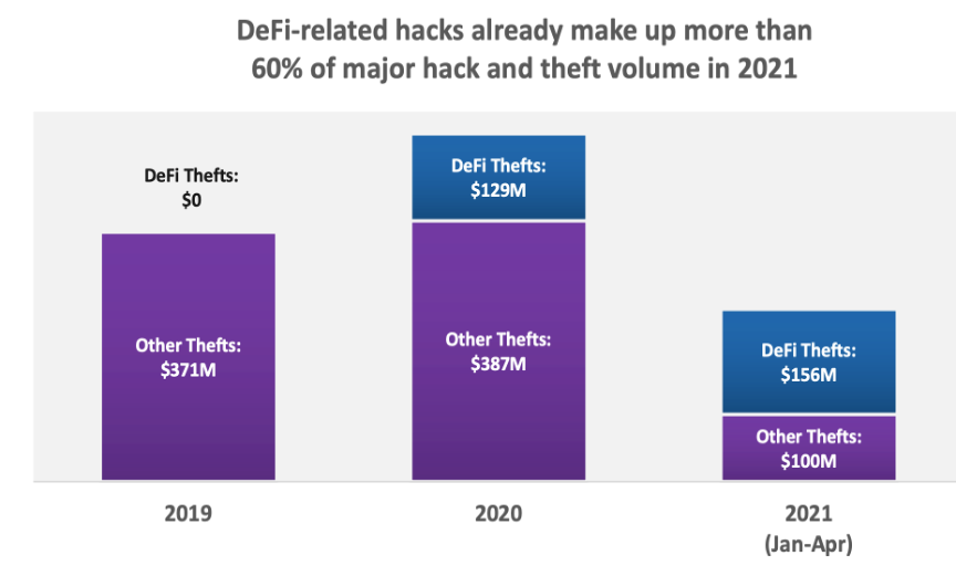 现在大部分所谓的欺诈事件和黑客事件都发生在 DeFi 中,传统数字代币已经不再造成严重问题。很多人认为 DeFi 是一个巨大的突破,但现在它也是问题的中心。