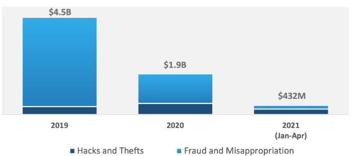 图7:币圈欺诈事件大部分是项目欺诈,而非黑客,但这种情况自2019年以来发生了变化