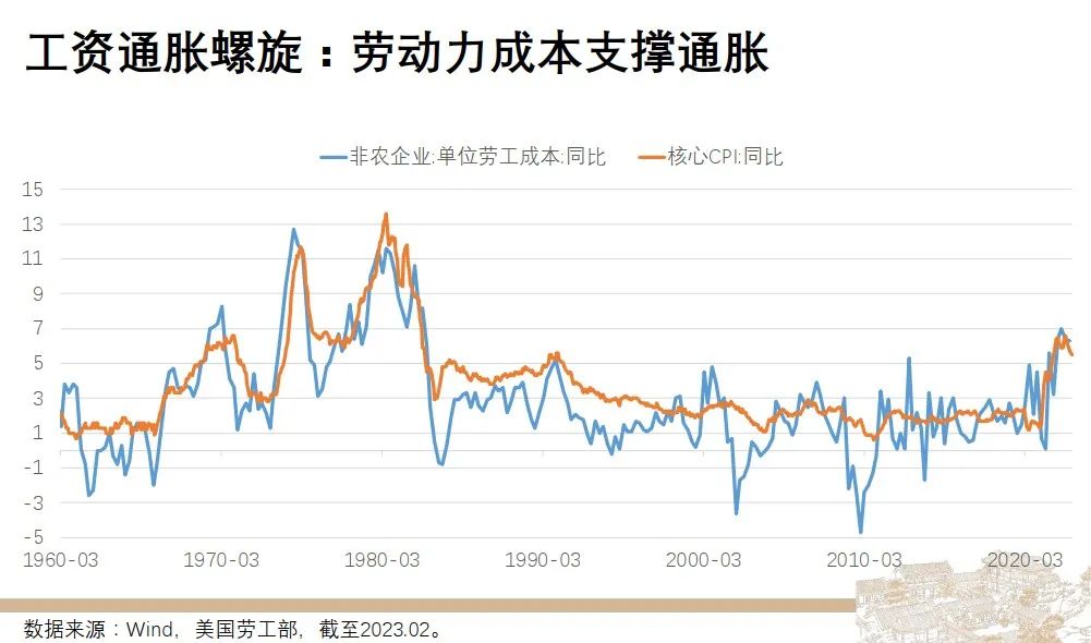 第二个原因与劳动力市场有关。在宏观经济学中,有一个重要的概念,叫做“菲利普斯曲线”。菲利普斯曲线的横轴代表通货膨胀,纵轴代表失业率。在美国等发达国家,推动通胀的最后一个因素是工资,在CPI中占比很大。从上图不难看出,目前美国的核心CPI仍然很高,并没有明显下降。核心CPI主要受劳动力价格推动。