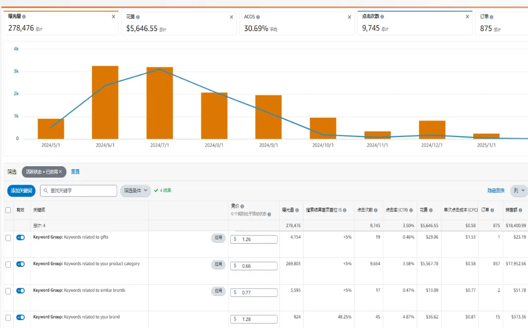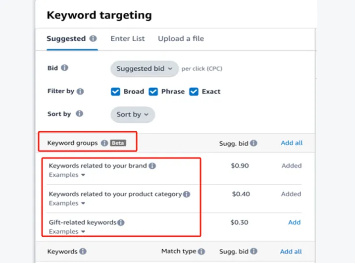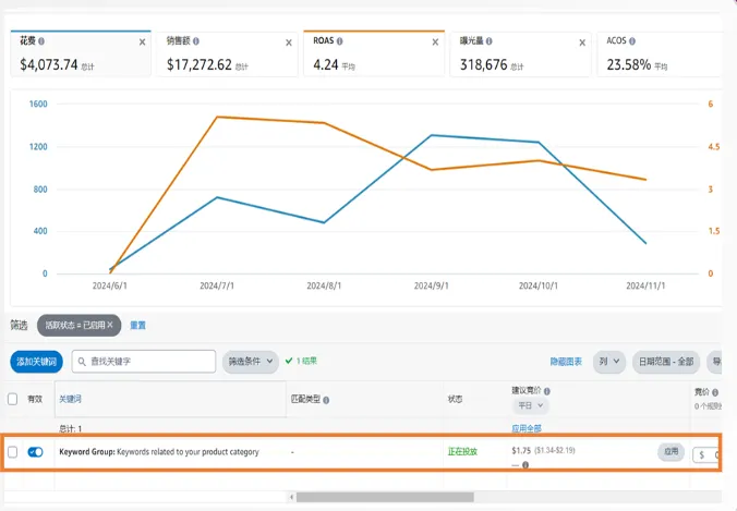 【关键字组】是亚马逊广告推出的一项新功能,旨在帮助卖家更容易有效地放置关键字。它的核心优势是: