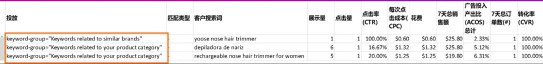 - 关键字组所涵盖的关键字更加集中,并且会根据消费者搜索趋势自动调整关键字,而自动广告则需要手动负面关键字,而表现不佳。