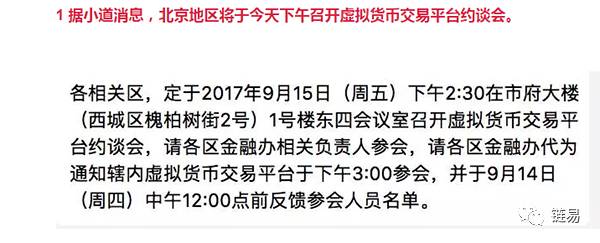 据谣言,该通知要求北京的所有交易平台指定详细的无风险清算计划,以正确处理投资者资金和各种虚拟货币的安全性。还要求每个交易平台应停止注册新用户,并在9月15日24:00之前发布公告,以告知用户。有传言称该公告来自北京互联网财务风险特殊纠正工作组。如果谣言是正确的,则意味着完全禁止数字货币交易平台的想法将成为现实。