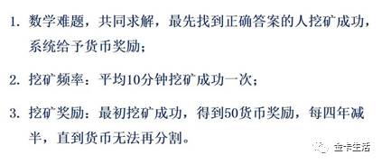 让我们一起解决数学问题。首先找到正确答案的人在采矿方面取得了成功。该系统给出了比特币奖励。奖励比特币的规则是在头四年的每一次采矿成功中获得50个比特币,并在四年后将其减半,然后在四年后将其减半,直到货币无法再次分割,其采矿频率是每10分钟成功地挖掘一次。比特币正是该规则实现了货币发行。