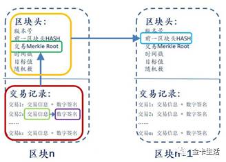以比特币为例,上图显示了每个比特币块的数据结构。交易记录分为两个部分:交易信息和数字签名。交易信息包括转移和转让金额的双方。数字签名是通过通过转让方的私钥签署交易信息获得的数据。