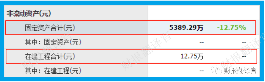 此外,翻译人员还发现,在今年的第一季度,该公司的固定资产为5389万元,而正在建设的项目为127,500元。