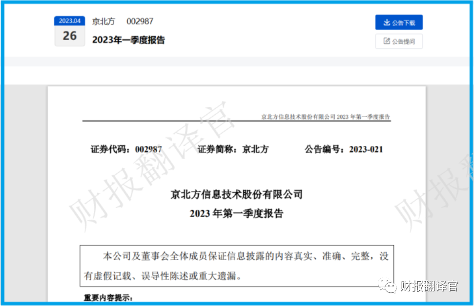 以下内容和财务数据均来自公司的2023年第一季度报告,没有个人意见。