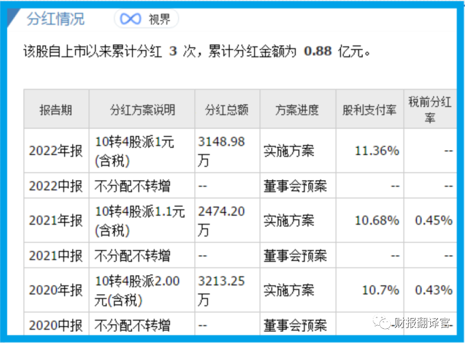 在公司的股息信息中,翻译人员还了解到,自上市以来,该公司已经支付了三倍的股息,总共分配了8800万元人民币。