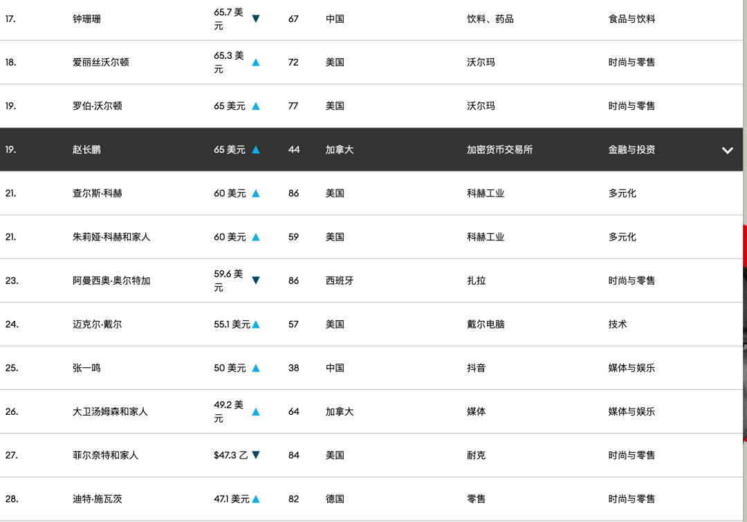 在今年4月初,福布斯并没有回避Zhao 的股东身份,而是再次评估了他的净资产。在当时的《福布斯全球富人名单》中,赵开彭在全球排名第19位,净资产为650亿美元,在中国人中排名第二,仅比“最富有的中国” Zhong 少7亿。