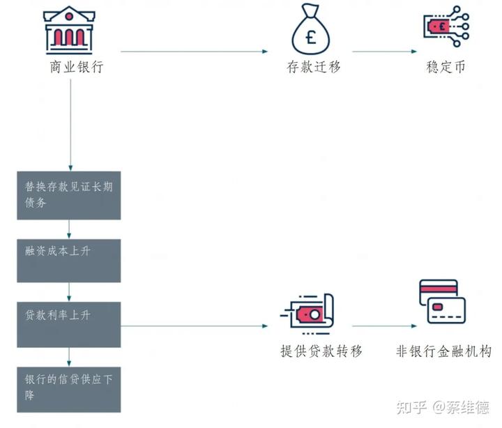 在实践中,数字货币的非银行提供商可能更关注支付,而不是主要作为价值储存来吸引存款。 在这种情况下,他们可能根本不需要提供金钱激励。 稳定币还将受到用于支持这些存款的资产回报的限制,并且它们可以提供存款利率。 这些资产至少需要具有高质量和高流动性。 此类资产产生的回报可能低于银行可获得的回报,银行可以用贷款等收益较高的资产来支持部分存款。 同时,保险制度可以防止银行存款耗尽。