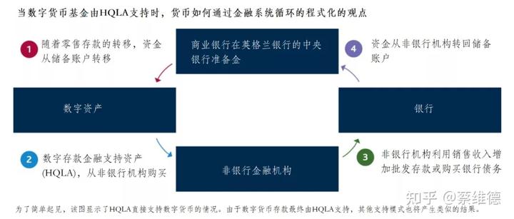 下图显示了当数字货币基金得到 HQLA 支持时,资金如何通过金融系统循环利用的程式化视图。 这意味着商业银行过去担心的存款大量流失问题可能不存在。