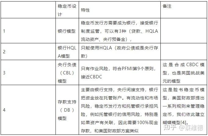 报告中考虑了四个说明性例子。 这些模型的主要区别在于用于支持稳定币负债的资产。 因此,不同的模型在反映上述银行体系主要特征方面存在差异。 四个具体示例如下: