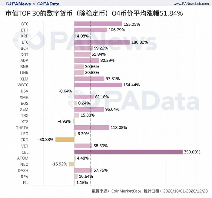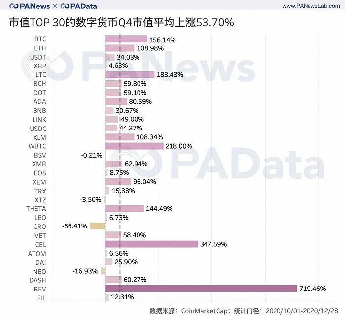 总体来看,第四季度,市值排名前30位的数字货币均取得了良好的盈利表现。