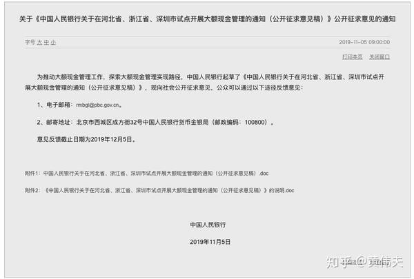 就在本月,央行发布《中国人民银行关于在河北省、浙江省、深圳市试点大额现金管理的通知(征求意见稿)》,开始大额现金管理。