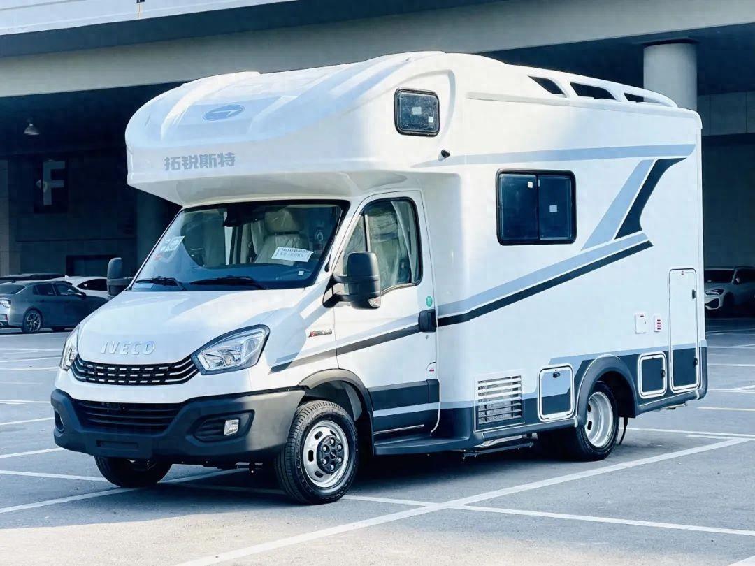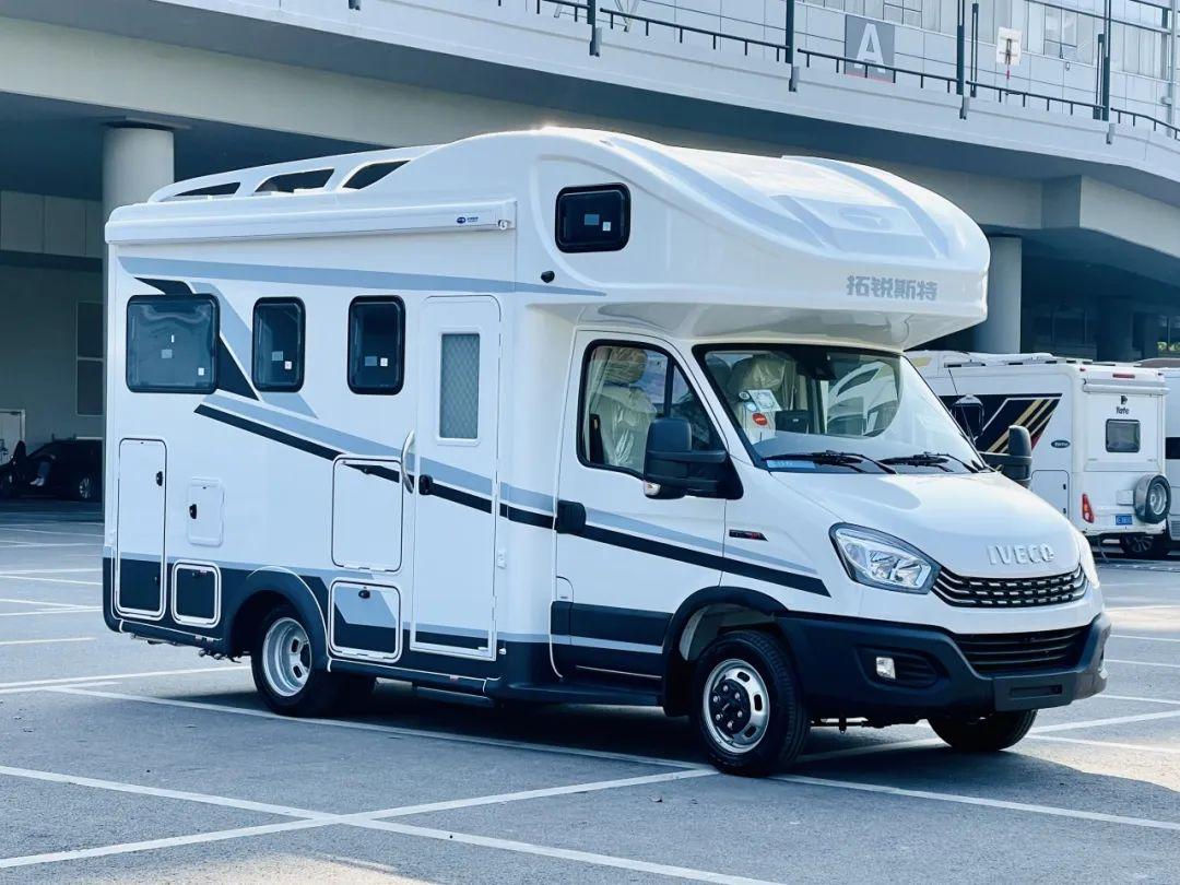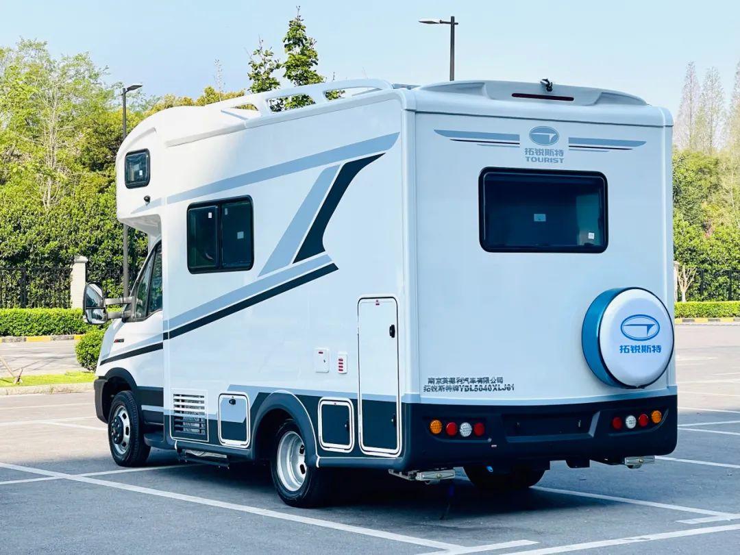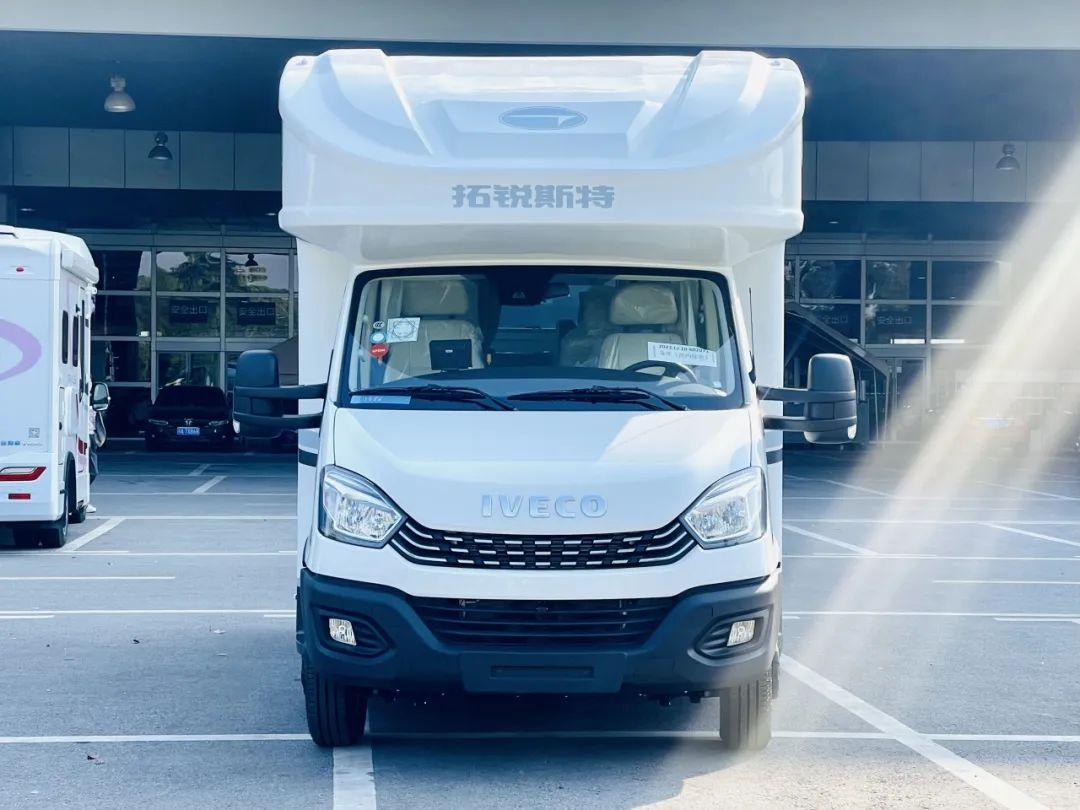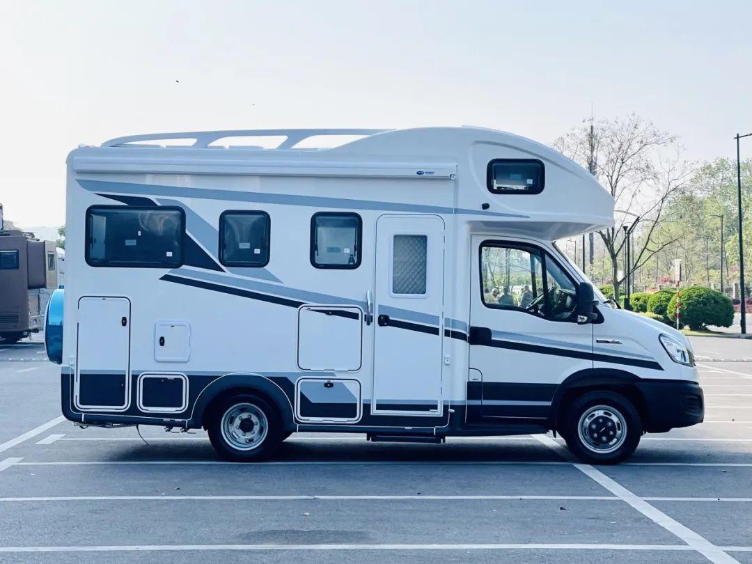 外观采用白色作为底色,车侧采用黑蓝色刺绣图案,简洁利落。 机身尺寸为5995×2488×,带来了非常宽敞的内部居住空间。 车长不到6m,持有蓝色C牌照即可行驶。 机身材质为全铝框架机身,不仅使机身更轻,还具有结构稳定、强度更高的优点。