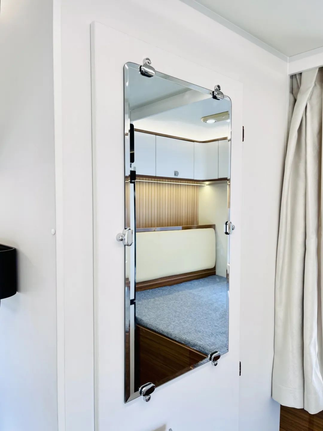 这款车利用浴室的开关门还设计了全身镜,用户可以在其中穿衣或整理自己的外表。