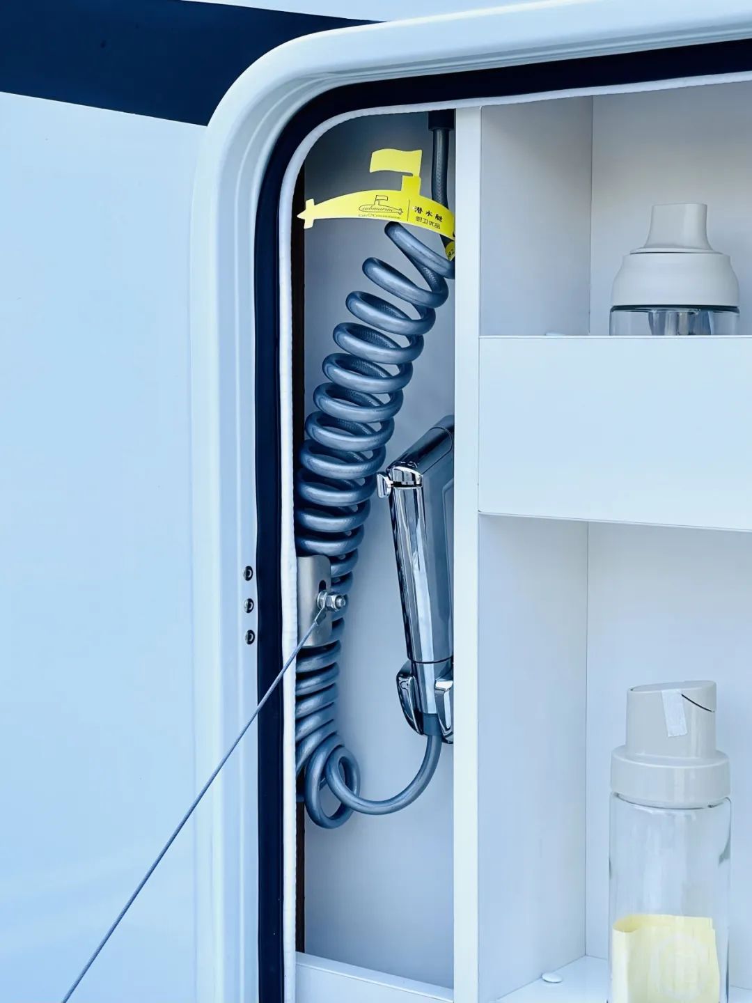 浴室采用独立设计欧意交易所,配有换气扇、储物架、拉出式花洒等,满足用户淋浴、盥洗需求。 卫生间空间通常较小,设计时需要考虑每一寸空间的利用。 这款车巧妙设计了抽屉式马桶,不用时可以推拉进去扩大淋浴空间,更加人性化。