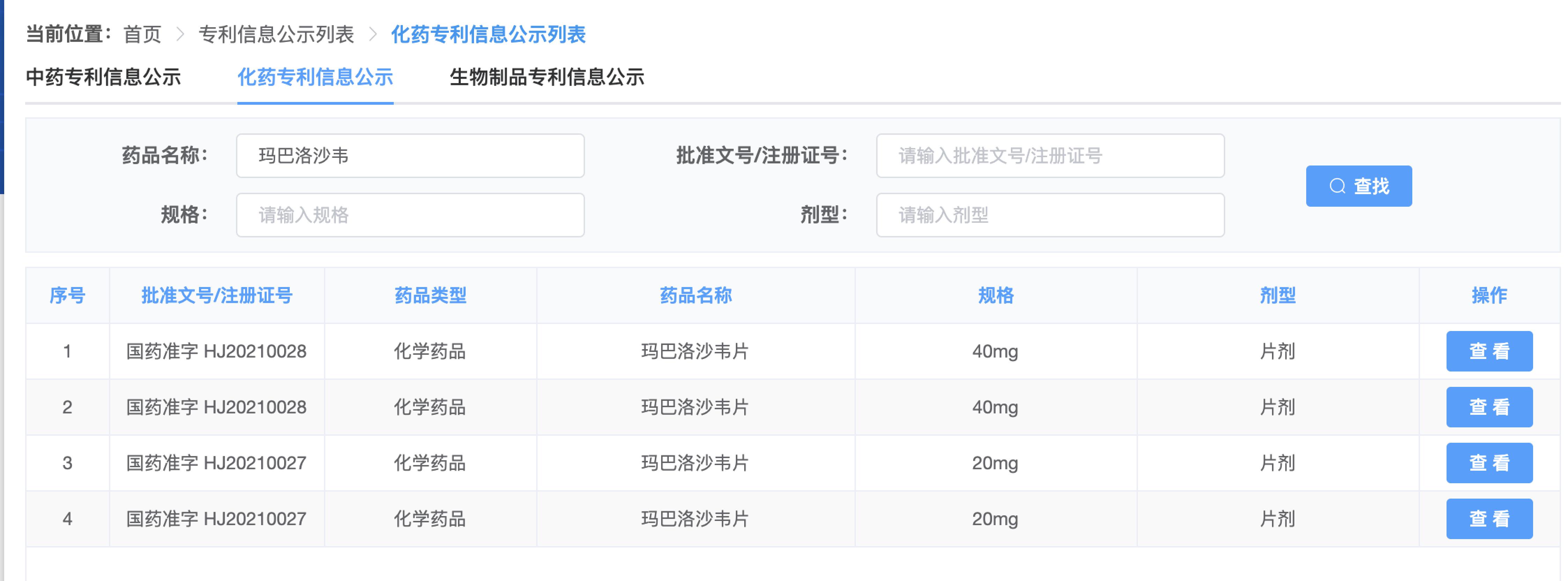 中国已上市药品专利信息登记平台