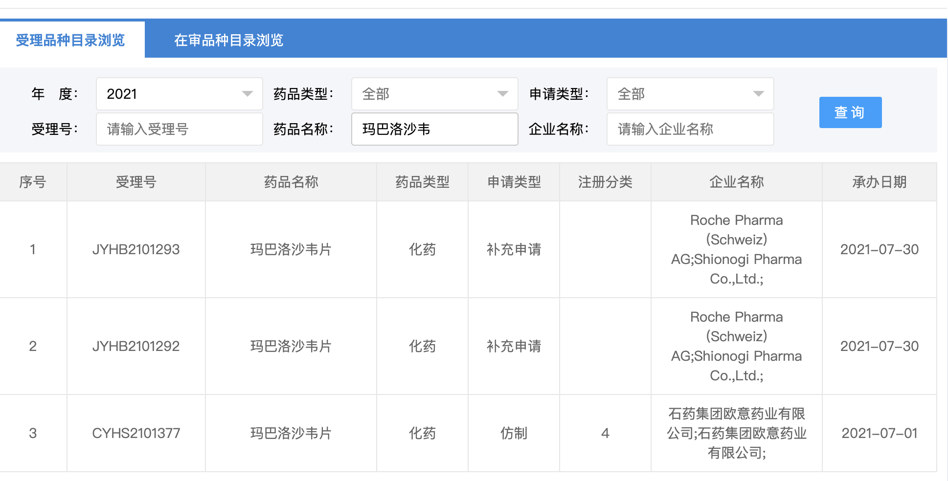 罗氏制药指出,石药欧洲和意大利在马巴洛沙韦片获批三个月后就申请了仿制药上市申请。 中新经纬从国家药监局药品审评中心(CDE)发现,2021年7月1日,CDE受理了石药欧益提交的4类仿制药申请。
