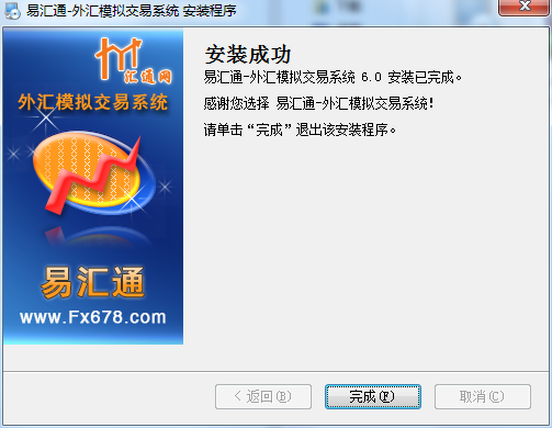 3、模拟外汇交易平台软件系统安装完成,点击完成。