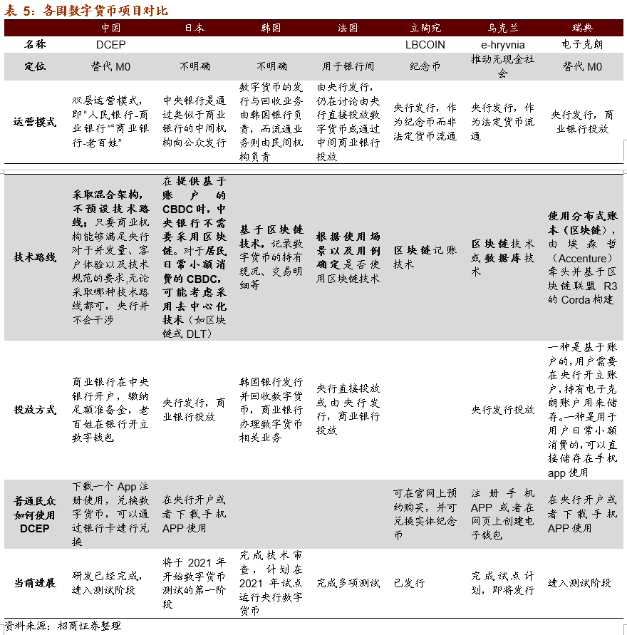 总体来看,2020年,各国央行都加快了央行数字货币的研究和测试。 从进展来看,美国态度转变,发布了白皮书。 欧洲的法国、乌克兰、立陶宛、瑞典等国进展迅速,已完成不同阶段的实验测试。 在亚洲,日本和韩国已表示将于明年开始测试。 从技术路线来看,瑞典、韩国、立陶宛都不同程度地使用了区块链技术,而其他国家则保留了不使用该技术的可能性。 我国央行在技术上保持中立,让商业银行自行选择技术。 在运营模式上,瑞典和美国构建了与中国类似的两级结构。 日本和韩国也通过中介机构间接发行硬币。 立陶宛直接在中央银行出售硬币作为纪念币。