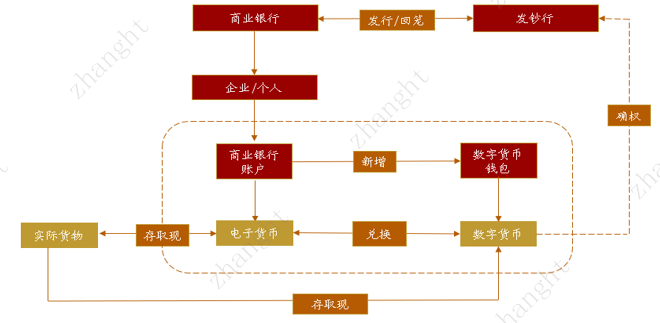 DCEP保留了现有央行-商业银行的“双模式”:央行按照100%准备金将数字货币兑换给商业银行,商业银行或商业机构再与公众对接。 这样做的好处是可以基于商业银行现有的服务体系和基础设施进行改造和利用。 同时,可以充分发挥以商业银行为主导的金融企业的主观能动性,有序参与市场竞争,发挥金融创新作用。