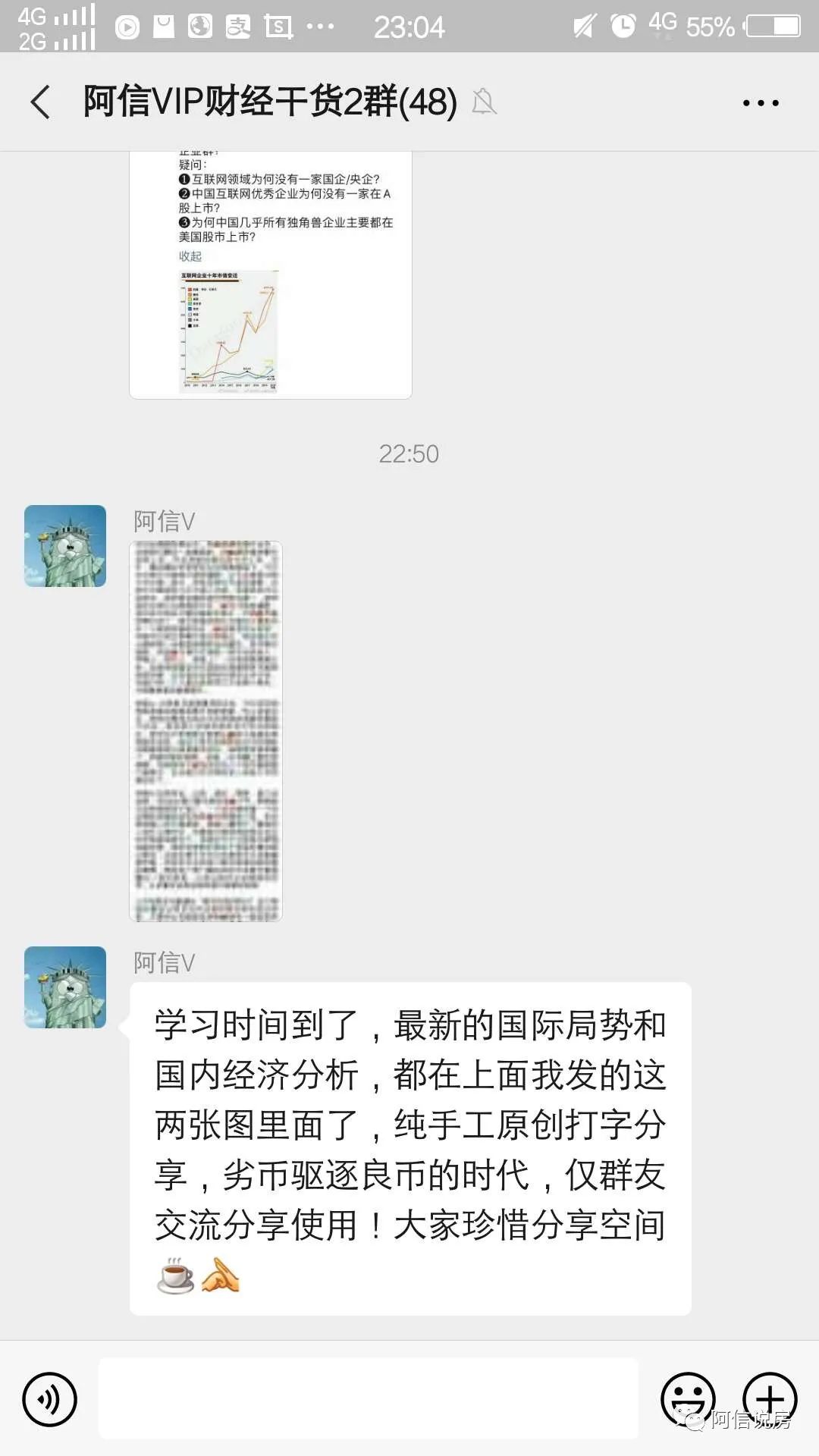 以下图片来自阿信VIP财经资讯组。 通常这些内容只是在群内分享,用于群内交流,因为这些内容在公众号上分享时很容易被删除。 分享到微信知识星球后,开通第二天就被F占了。 所以我只能在VIP理财群里分享了!这些都是我自己的经验和我自己做的投资产品。