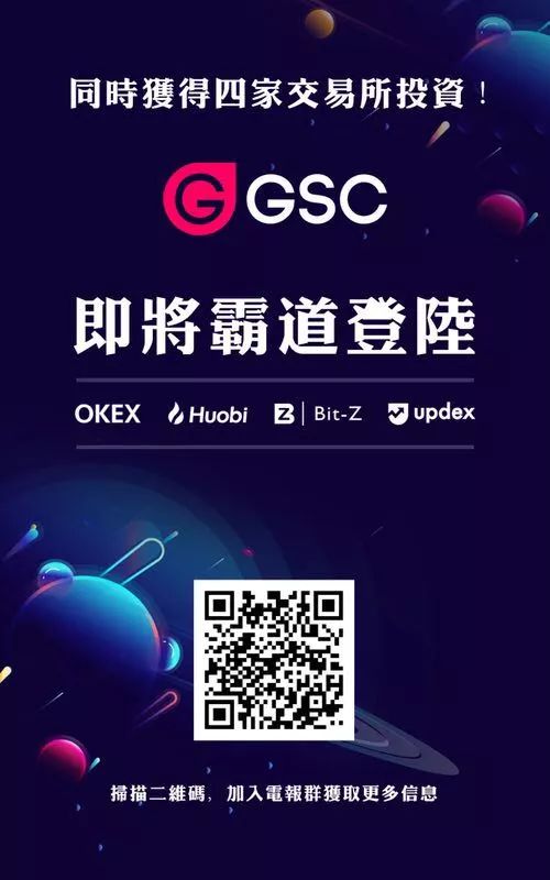 目前,GSC已获得火币资本、Node、Coin 、Bit Ocean、万币资本、Fund V等国内外顶级投资机构的基石投资,同时获得主流媒体的投资和资源支持币世界、金色财经等行业。