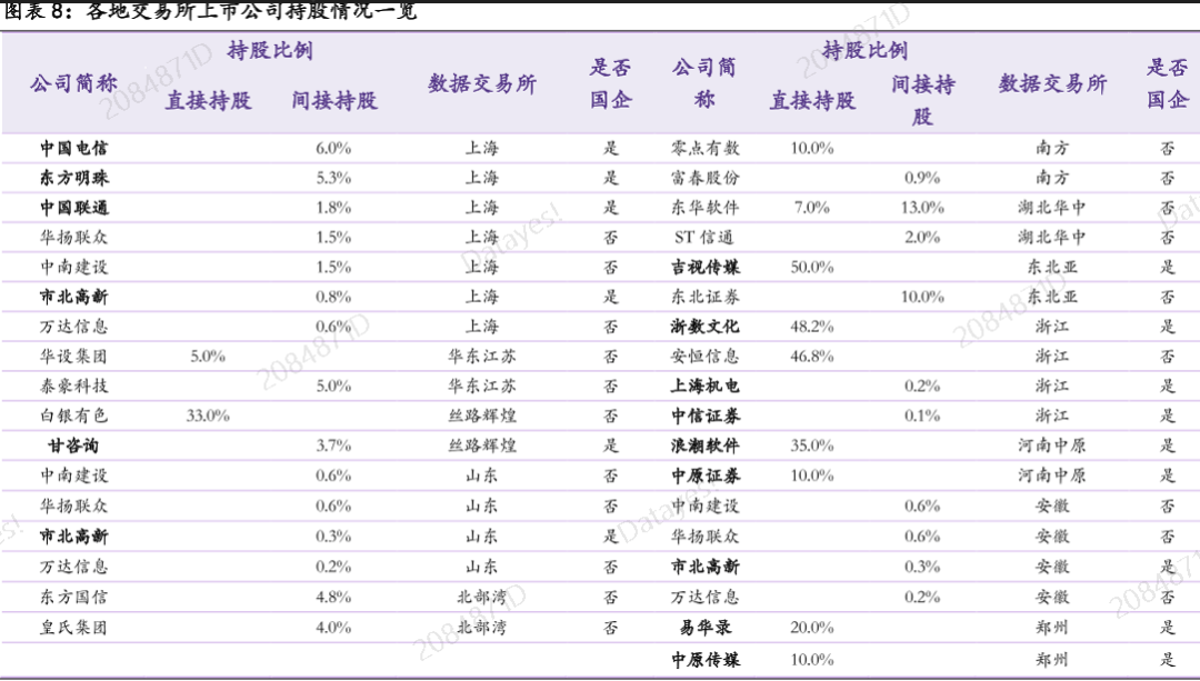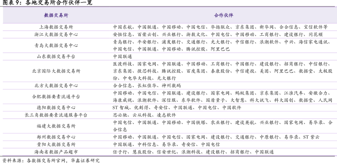 个股层面,华鑫证券建议关注数字交易所股东及合作伙伴,重点关注参与一线城市数据交易所的国企。