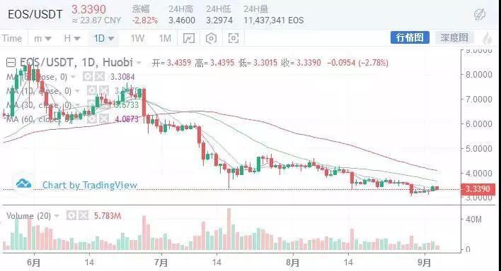 EOS当前价格:3.33美元,下方强支撑为3.0美元,上方压力为3.4美元。 与市场的联系较弱。 此前有3.0附近补仓通知,不建议观望。
