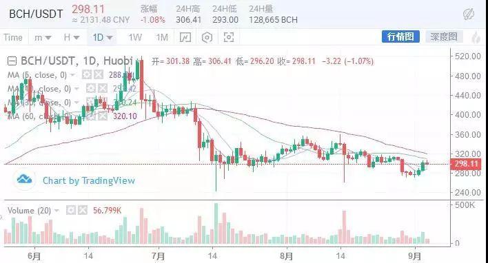 比特币现金:298 美元,280 美元下方有强支撑,310 美元上方有压力位。 BCH短期联动主要是比特币,长期可以逢低补仓。