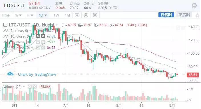 LTC当前价格:67.6美元,下方支撑位63美元,上方压力位70美元。 昨天有不错的反弹,但没有有效稳定在70点。 后来的联动主要是比特币。