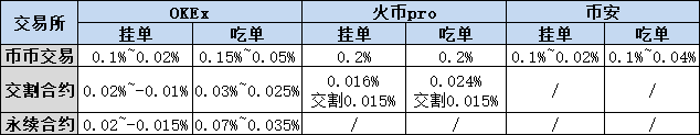 法币购买无手续费,但仅支持少数主流币种,且有1%左右溢价。一般是先用法币购买稳定币USDT,再进行币币交易,费率如下: