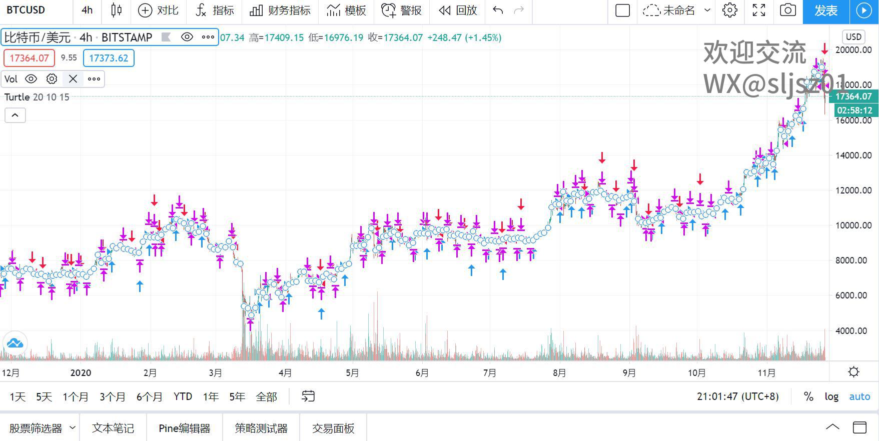 它可以说是一款简洁、易用、功能极其强大的交易图表工具,但它不仅仅是主观交易者的武器,还内置了一门名为Pine的编程语言以及相应的Pine编译器。Pine可以获取所有历史交易数据,可以快速轻松地编写一些基于K线的交易策略(熟悉交易先锋的同学可以将其比喻为TB级的数字货币)。