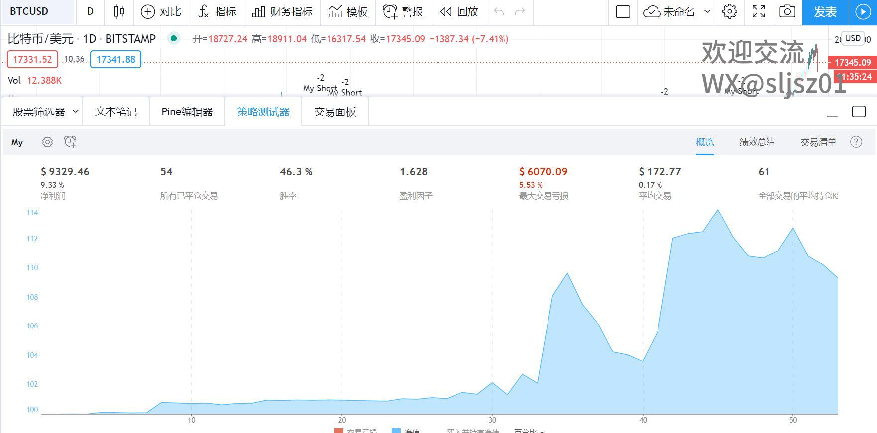 我们没有改变任何条件和参数,将策略移植到了同样是热门数字货币的ETF上,策略依然表现稳定。我们提供来自多家主流交易所的数字货币对,以及外汇市场上的商品、股指、A股等测试数据。您可以测试自己编写的Pine语言策略,只需要在图表左上角修改产品即可快速完成产品切换和策略测试,尝试一下,也许会发现更好的策略。
