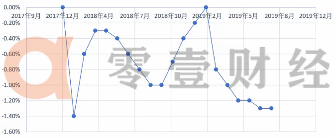 2018年1月至2019年8月,中国人民银行虽然没有实行负利率政策,但始终处于负利率区间(按照一年期定期存款利率1.50%计算)。