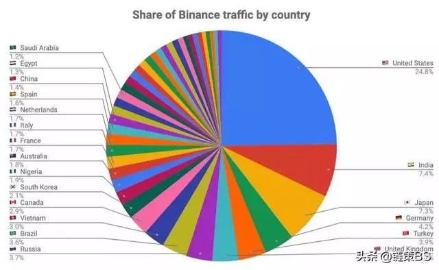 熟悉数字货币的人都知道,目前全球最活跃的数字货币人群集中在美国。美国客户流量占币安总流量的20%。在过去的6个月里,币安的网站估计有近1.85亿访客,其中至少有3000万来自美国。