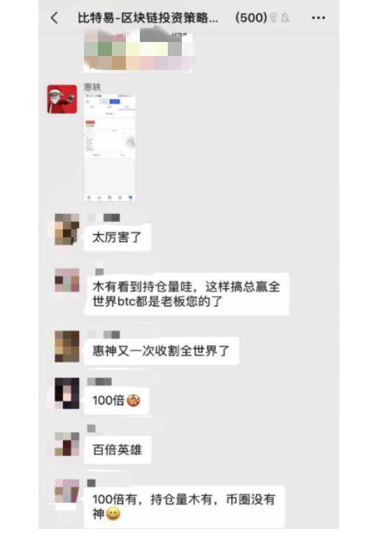 在数字货币期货市场,惠一也以预测准确而闻名,在投资微信群中,他被称为“惠神”,从2017年到2019年初,很多投资者听他的预测和指点赚钱,为他和他公司的产品吸引了不少粉丝。