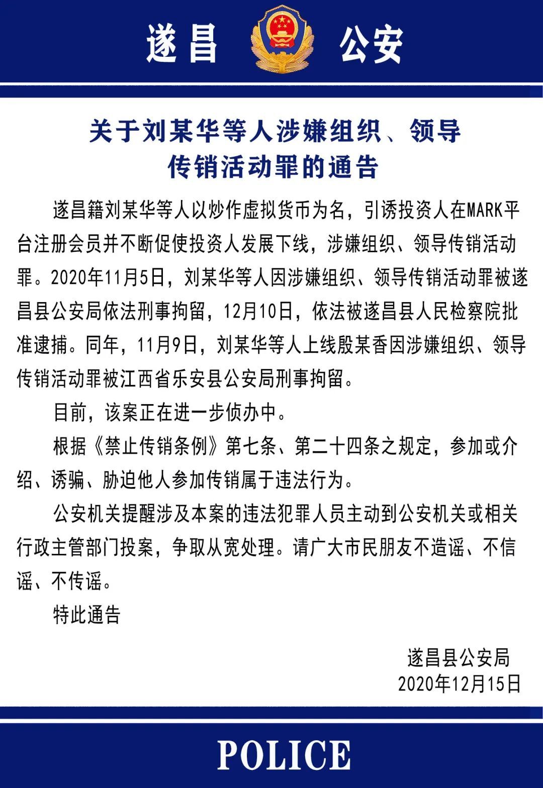 关于刘某华等人涉嫌组织、领导传销活动的通知