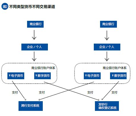 “在央行授权发行法定数字货币的环境下,商业银行金库里的数字货币是商业银行的资产、发行银行的负债;商业银行客户账户里的数字货币是客户的资产、发行银行的负债(发行银行不一定是开户行)。对于客户之间点对点的数字货币交易,法定数字货币发行银行会确认并管理交易(谁发行谁管理),央行承担监管责任;电子货币的交易与现有流程一致,通过央行跨行支付系统和商业银行核心业务系统完成。需要注意的是,发行银行与央行、发行银行之间的互联互通将由央行在顶层进行设计,这个顶层能否迁移到分布式账本的架构上,将是行业面临的重大课题。”