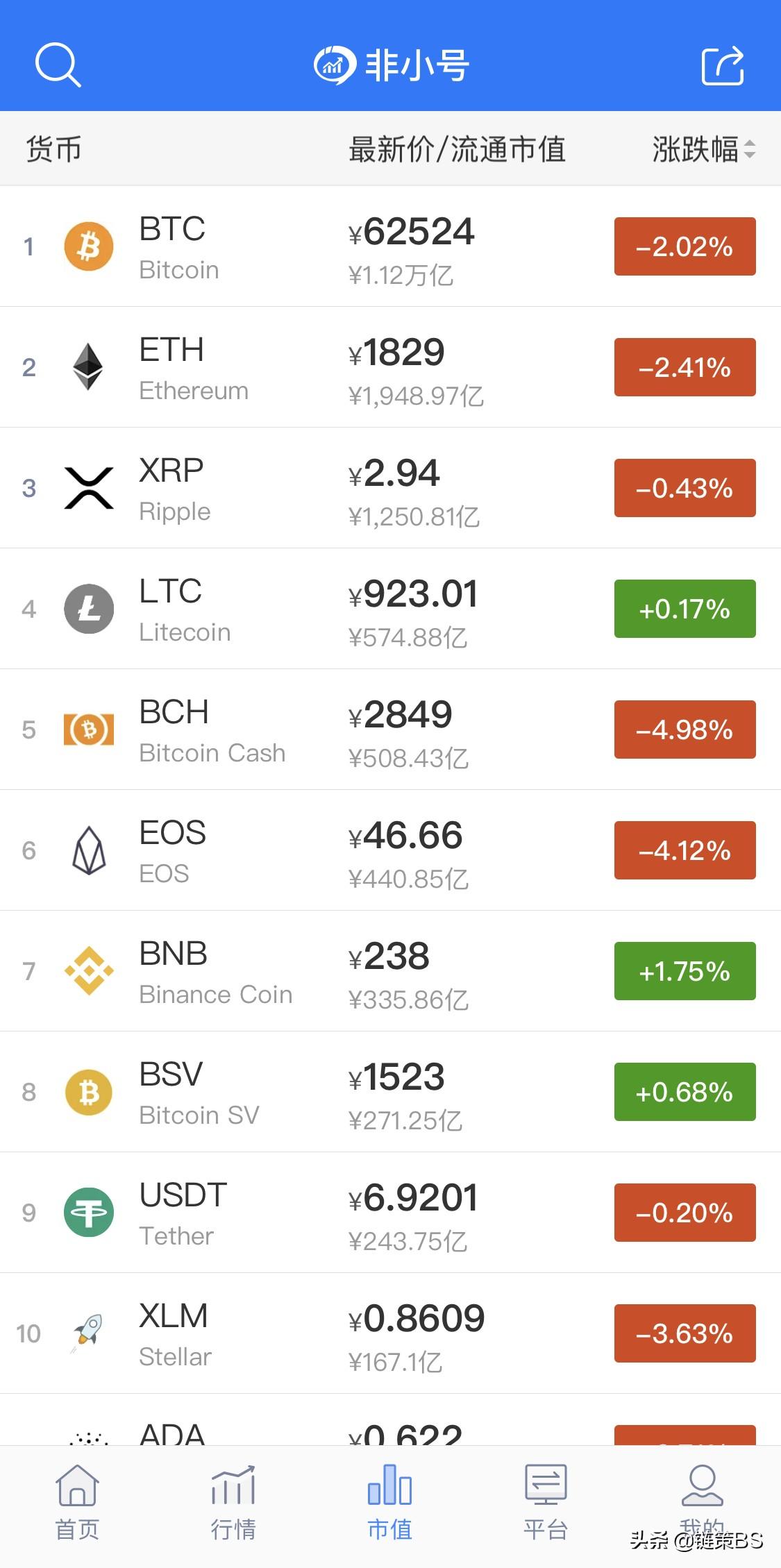因此投资者通常会考虑市值排名前十的加密货币,也就是通常所说的主流加密货币。市值排名前十的加密货币占总市值的90%以上,其中比特币是最大的。截至今日,比特币的流通市值已达到1.12万亿人民币。